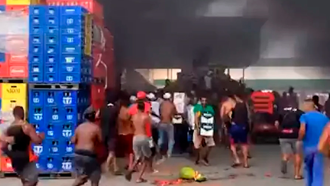 El Departamento de Bomberos de Rio de Janeiro buscó sofocar las llamas de un incendio en Ceasa, un centro de distribución de alimentos. A pesar de la emergencia que sucedió en la mañana de este lunes, muchas personas saquearon el lugar.