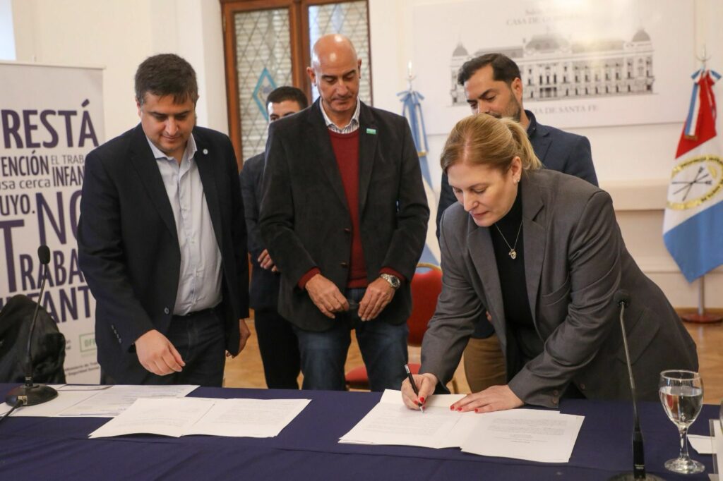 Durante el encuentro en Casa de Gobierno se firmaron convenios con la localidad de Alcorta y con la Biblioteca Popular Empalme de Rosario, para el fortalecimiento de los Canyf que funcionan en esos lugares.