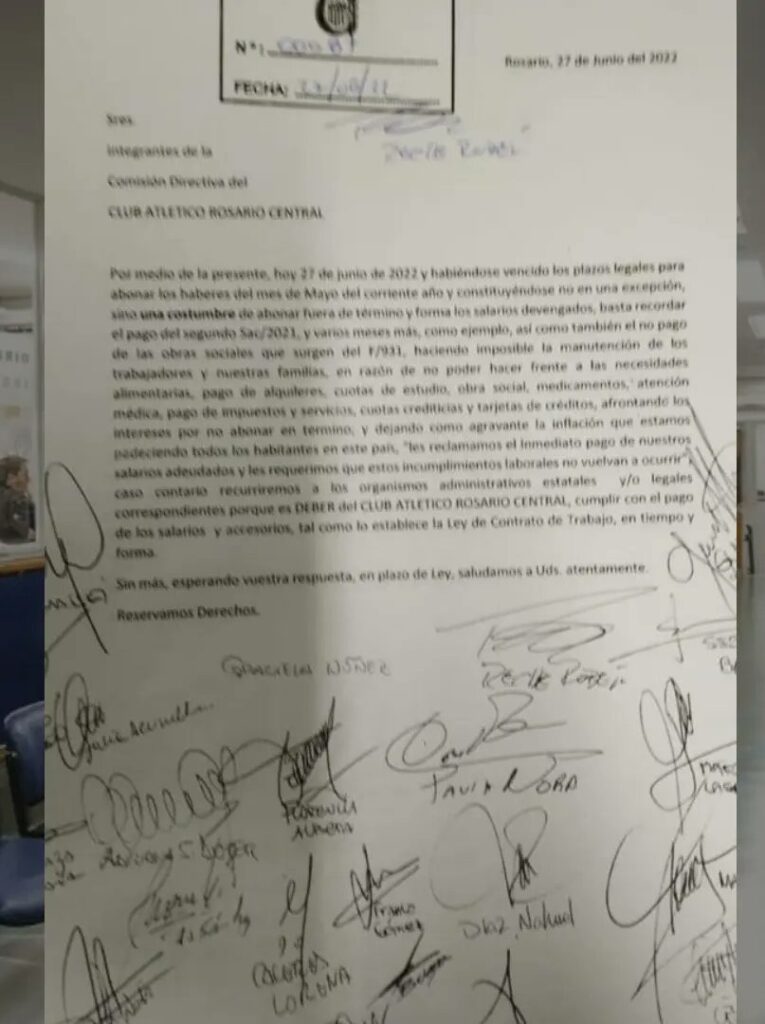 Los trabajadores se presentaron en la sede de calle Mitro, donde elevaron una queja a la comisión directiva Canalla para criticar el accionar de los dirigentes. De acuerdo a lo detallado en la misiva, la institución aún no pagó los salarios pertenecientes a mayo, y consideran que la situación podría replicarse en los primeros días de julio con el sueldo del corriente mes.