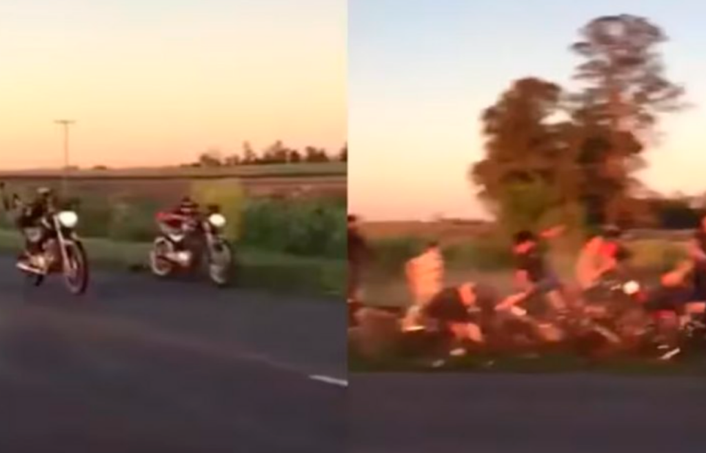El hecho tuvo lugar minutos antes de las 20 de este sábado, cuando dos jóvenes corrieron una picada de motos a la altura del barrio privado Chacras del Bragado. Todo quedó filmado por uno de los presentes.