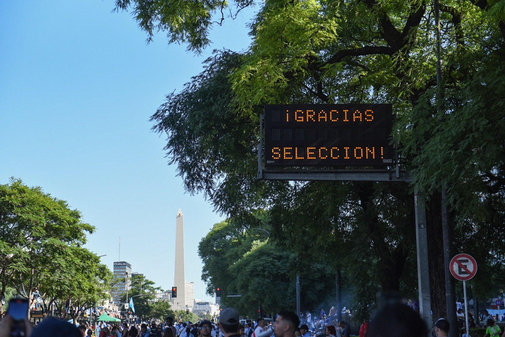 La Selección Argentina arribó al país durante la madrugada proveniente de Qatar y fue recibido por cientos de miles de personas. Sin embargo, el grueso de la gente llegó a Capital Federal este martes, donde está se realizó una multitudinaria caravana para celebrar la obtención de la tercera Copa del Mundo. En ese marco, y ante la el caudal de público apostado sobre la Av. 9 de Julio, las autoridades decidieron cambiar el recorrido del micro.