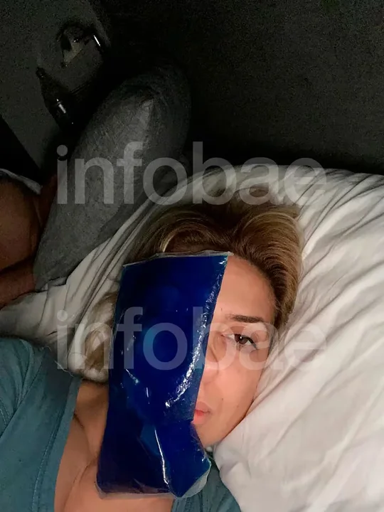 Asimismo, una de las imágenes registró el momento en el que la periodista utilizó almohadillas de gel para disminuir la inflamación en su cara.
