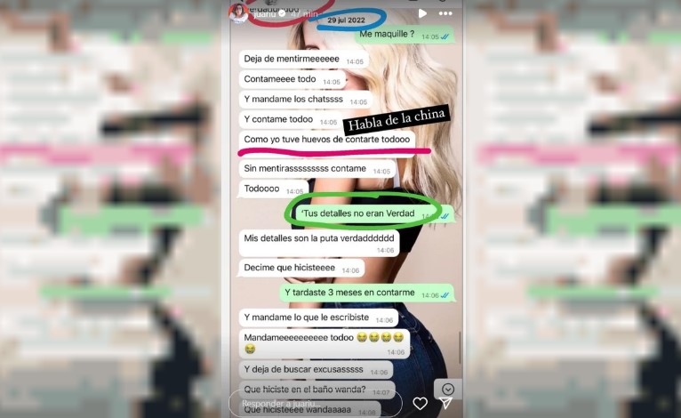 La panelista Juariu compartió los mensajes en los que la pareja mantuvo una discusión por la supuesta infidelidad de Wanda con el futbolista, con quien habría tenido relaciones en su domicilio en julio de 2022.
