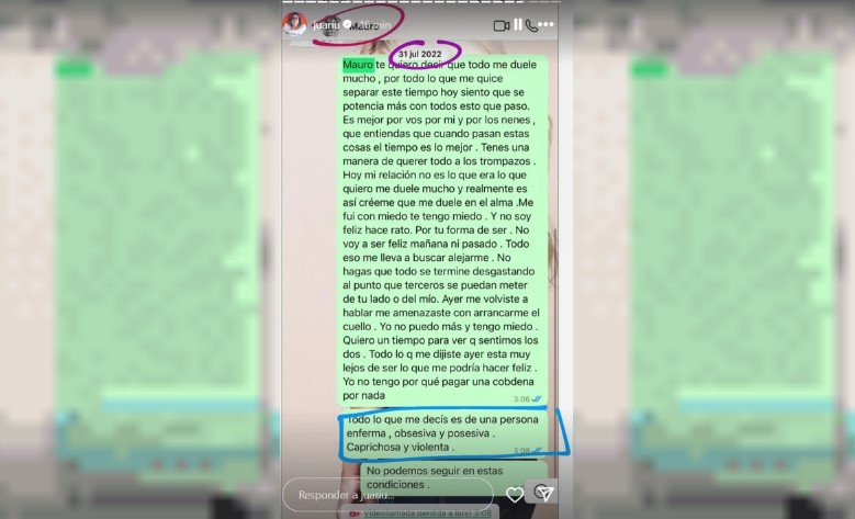En los mensajes también se puede ver que Mauro reconoció todo lo ocurrido con la China Suárez en octubre de 2021 cuando Wanda la acusó de “cargarse una familia”.