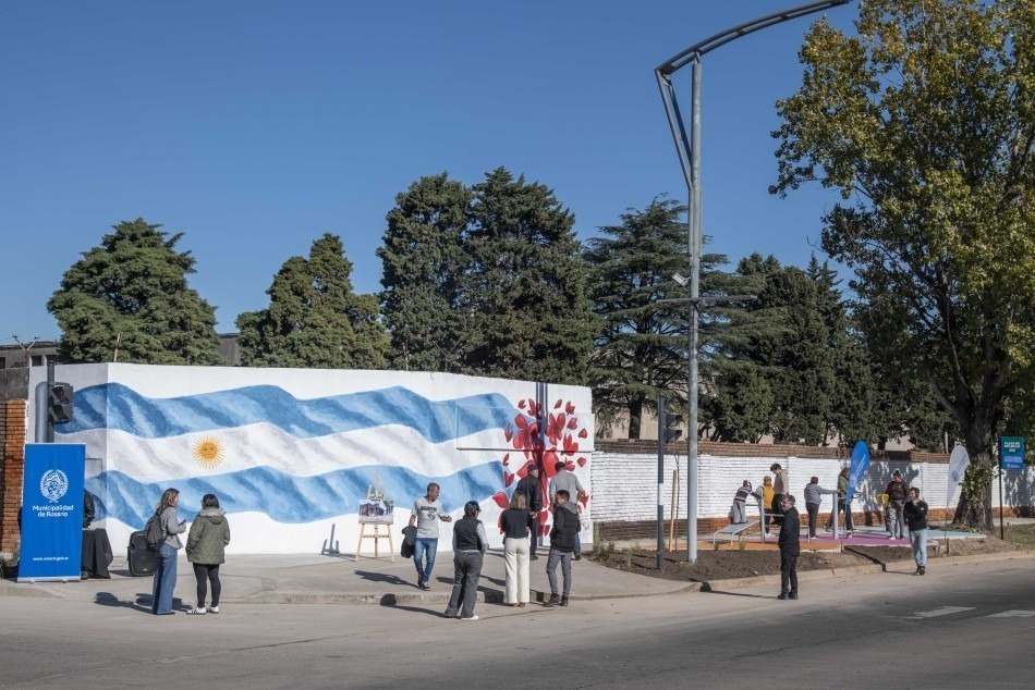También se blanquearon muros para dar lugar a un nuevo mural alusivo a la enseña patria, y se trabajó en la parquización del espacio, mejorando el entorno urbano y generando mayor seguridad y habitabilidad.