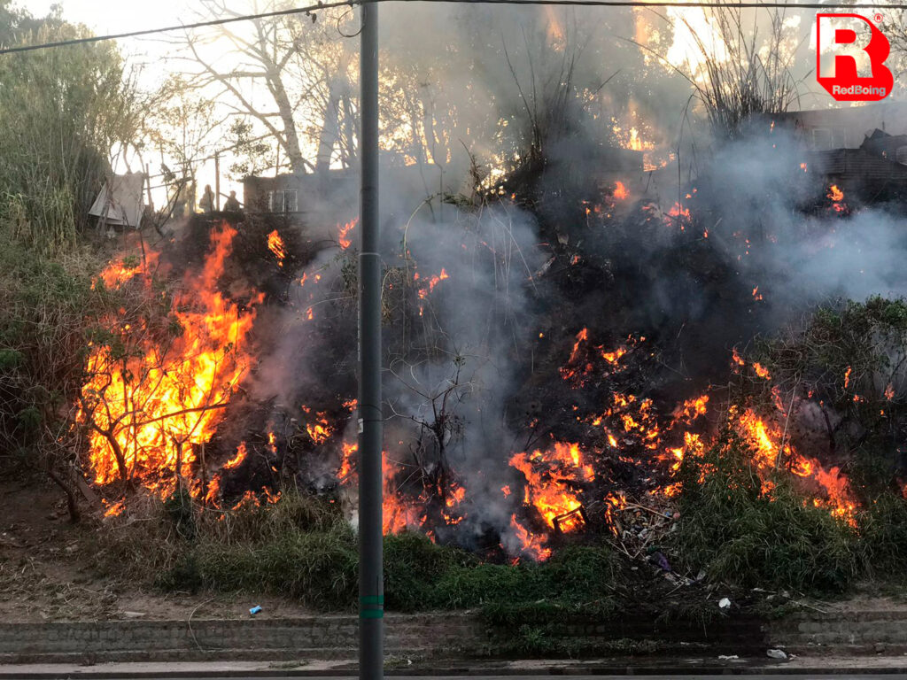Vecinos del lugar temen a que el fuego llegue a las casas precarias que se ubican arriba de la barranca en el barrio República de la Sexta.
