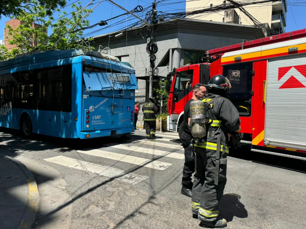 Durante el mediodía rosarino, una unidad de la línea K se incendió en Mendoza y España luego de un desperfecto técnico. El fuego se produjo luego de un cortocircuito a raíz del desprendimiento de las lanzas de la vía, arrastrando de esta forma el cableado público.