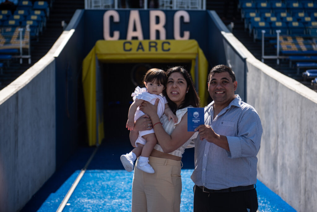 El secretario de Gestión de Registros Provinciales, Matías Figueroa Escauriza, y el director Provincial del Registro Civil, Sergio Duarte, acompañaron este miércoles los primeros casamientos en el Estadio “Gigante de Arroyito”, de Rosario Central, en el marco del programa provincial “Casate con tu Ciudad como Testigo”.