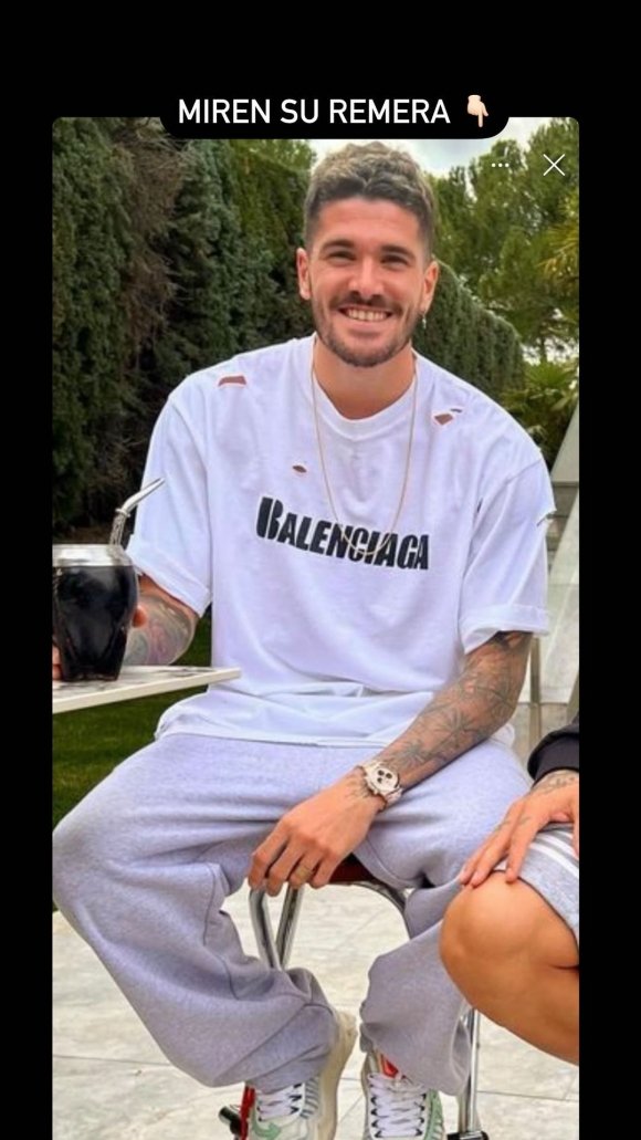 Estefanía Berardi, panelista de “Mañanísimas”, publicó en sus redes una imagen que De Paul subió Instagram y reforzó las versiones sobre su relación con Tini. “Rodrigo de Paul acaba de subir esta foto. Miren bien los detalles”, escribió la periodista sobre la imagen en la que se ve al jugador del Atlético de Madrid posar junto a Ángel Correa, con una remera de la marca Balenciaga.