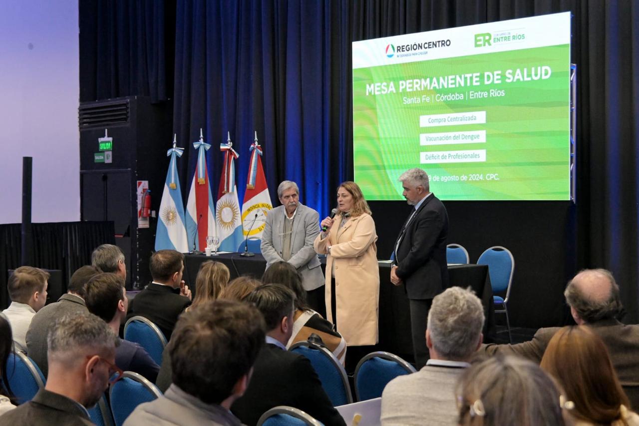 La ministra de Salud de la Provincia, Silvia Ciancio, junto con sus pares de Córdoba, Ricardo Pieckenstainer, y de Entre Ríos, Guillermo Grieve; participó este viernes en Paraná de una nueva reunión de la Mesa Permanente de Salud de la Región Centro, donde se analizaron políticas públicas comunes del área. El encuentro, llevado a cabo en el Centro Provincial de Convenciones, fue encabezado por el gobernador de Entre Ríos, Rogelio Frigerio junto a la vicegobernadora Alicia Aluani.