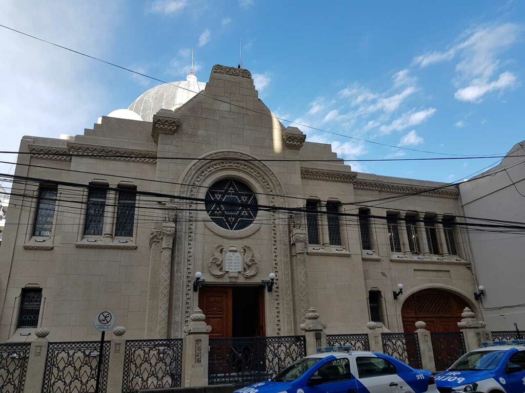 Los puntos son las sinagogas Beit Jabad (Mendoza al 1500) y la Asociación Israelita de Beneficencia – Kehilá (Paraguay al 1100) como el club Unión Sionista (Salta al 2500) cuentan con dos agentes policiales custodiando sus ingresos.