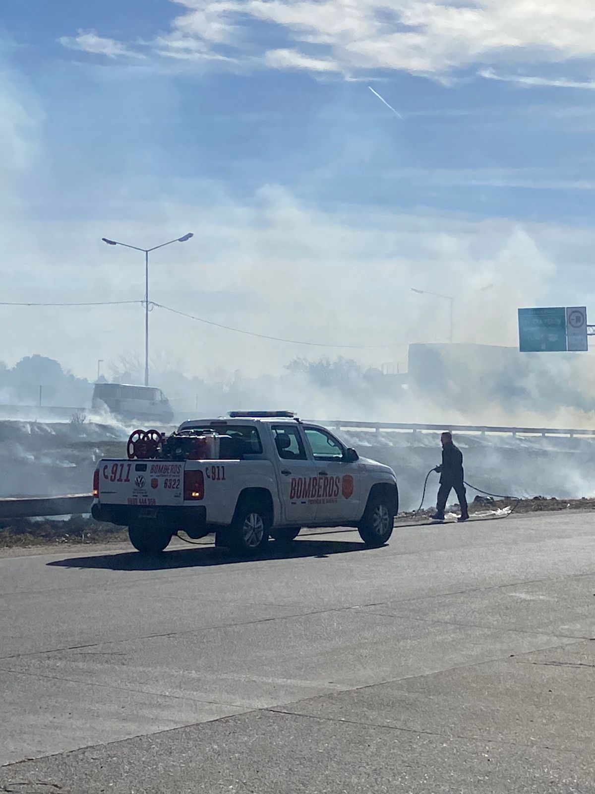 El cuerpo de Bomberos y agentes del 911 trabajan en la zona para controlar los diferentes focos de fuego que se extendían por toda la zona de la colectora de la circunvalación y Mendoza.