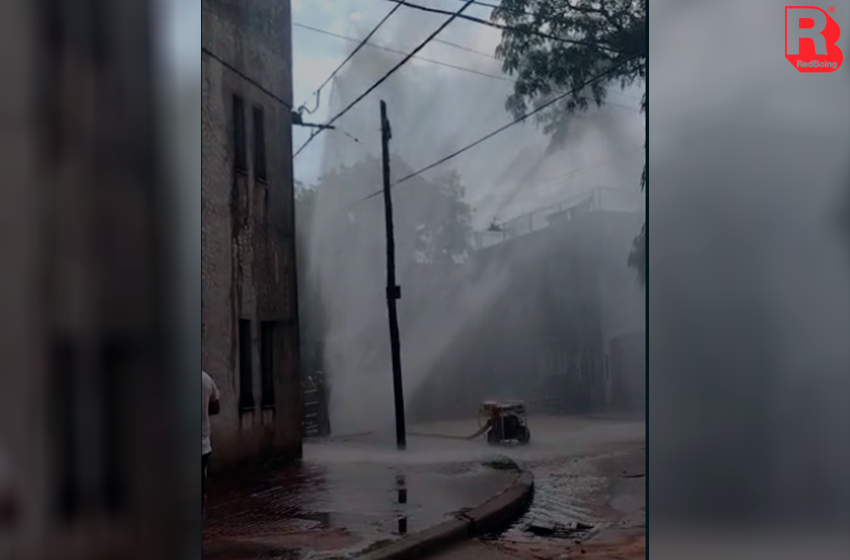 Esto ocurrió tras la ruptura de un caño de agua y, por la fuerte presión salió expulsada con fuerza hacia arriba, dando la sensación de una falsa lluvia en esa esquina. Tras unos minutos, la calle comenzó a llenarse de liquido.