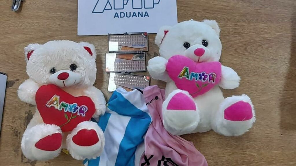 Dos ositos de peluche impregnados con cocaína que iban a ser enviados en una encomienda a Hong Kong fueron secuestrados por personal de Aduana durante un operativo en el Centro Postal Monte Grande, informaron este jueves fuentes de ese organismo.