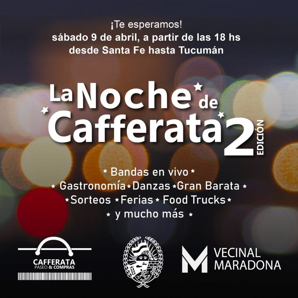 Luego de una primera edición exitosa en diciembre de 2021, la Asociación Vecinal Dr. Esteban Maradona y comerciantes del Paseo Cafferata, acompañados por la Municipalidad de Rosario, organizaron para este pasado sábado 9 de abril la segunda edición de La Noche de Cafferata, un encuentro que convocó a familias a disfrutar del espacio público.