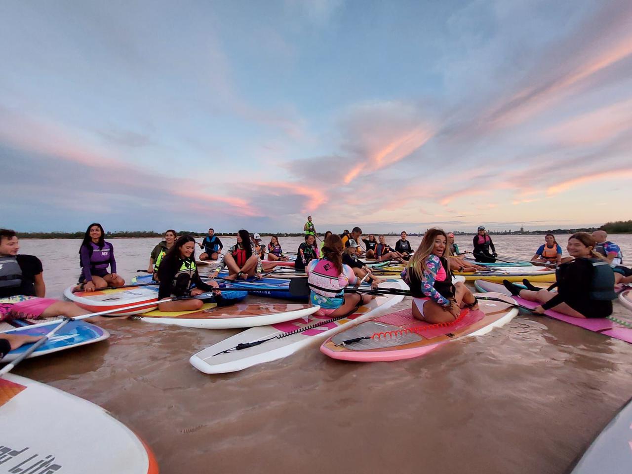 “Sólo en una clase se culmina remando parado sobre la tabla, y allí se abre una nueva perspectiva. El deporte apasiona, trabajan todos los músculos simultáneamente en cada remada, y la sensación al desplazarte parado sobre el agua, deslumbra”, ilustraron los organizadores de la regata.