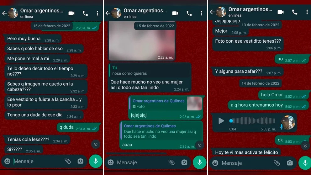 Los hombres pedían fotos, videos y llamadas con las adolescentes que se negaron en más de una oportunidad. Además, hacían referencias a los entrenamientos, la ropa y como se desempeñaban deportivamente ambas víctimas.