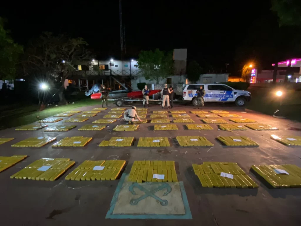 Prefectura lo siguió, lo interceptó a la altura del kilómetro 1242 del río Paraná y, luego de constatar que trasladaba más de una tonelada de estupefacientes, lo detuvo.