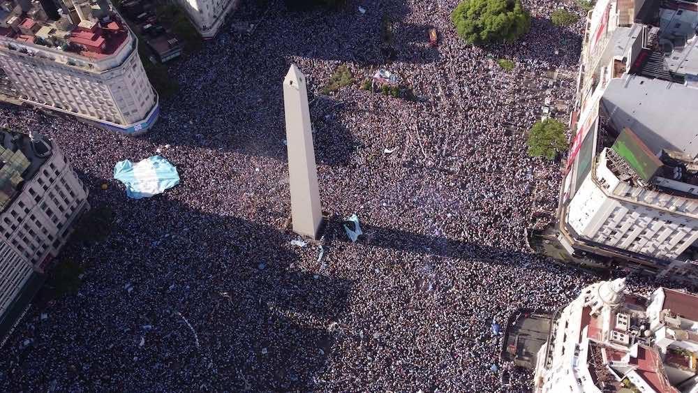 Desde videos en baja definición grabados con celulares hasta tomas en HD tomadas desde drones, desde las intervenciones de influencers como Momo, Markito Navaja, Marti Benza, Fran MG, Owen Pelle, El Pabellón, Joaco López, Morena Beltrán, Nico Occhiato, Alfre Montes de Oca y Alaska (una buena jugada de marketing de la producción) hasta las milagrosas atajadas del Dibu cuando se paraban los corazones Muchachos, la película de la gente resulta un rompecabezas, un patchwork, una mirada caleidoscópica y una construcción coral sobre una hazaña, una épica dentro y fuera de la cancha. La reconstrucción de la historia de un triunfo deportivo, pero sobre todo de un desahogo nacional en tiempos en que los éxitos y los motivos para la comunión social precisamente no abundan.