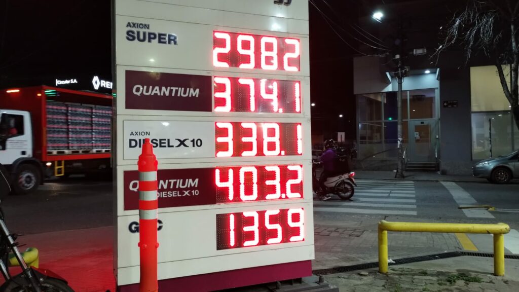 Sin embargo, este miércoles los rosarinos amanecieron con otro aumento en los valores del litro tanto de nafta como de gasoil. La línea premium de la primera se posicionó en $376,2, mientras que la super pasó a valer $305,2. En tanto, la diesel costará desde esta mañana $408,6 en su mejor versión y $337,7 en la normal.