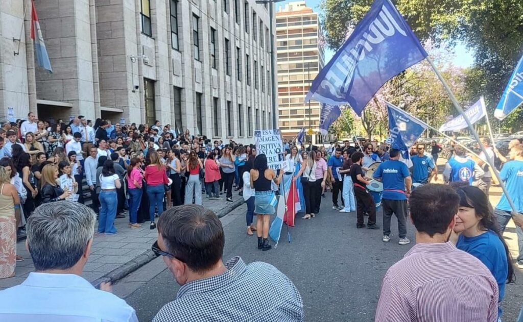 Mediante un comunicado emitido este miércoles, expresaron: “Con total acatamiento al paro con asistencia de 4 horas en los turnos mañana y tarde en toda la provincia de Santa Fe, marchamos y se presentaron ante la Casa de Gobierno, nuevos reclamos administrativos y prontos despachos en defensa de la carrera judicial”.