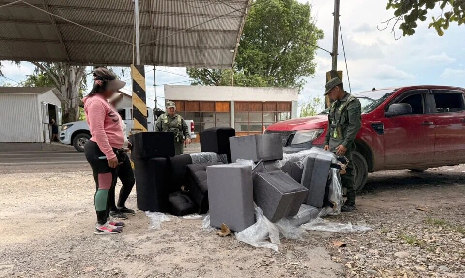 Durante la inspección inicial del vehículo, los efectivos de la Sección “28 de Julio” detectaron que en la parte trasera se trasladaba un juego de sillones, lo que despertó sospechas y motivó una revisión más profunda de la carga. Tras identificar al conductor —un hombre mayor de edad— los gendarmes avanzaron con el control del rodado.
