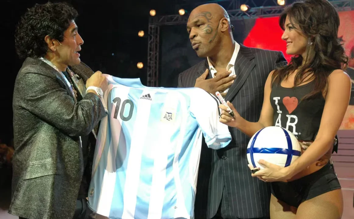 El suceso tuvo lugar en 2005, durante una emisión del programa conducido por “Pelusa” que se llevó a cabo desde el Luna Park. Escudero, que formaba parte del staff de bailarinas del show televisivo, recordó: “Yo me acerqué para darle una camiseta a Diego para que él la firme, Mike Tyson hizo lo mismo, pero puso su firma y se intercambiaron las camisetas”.