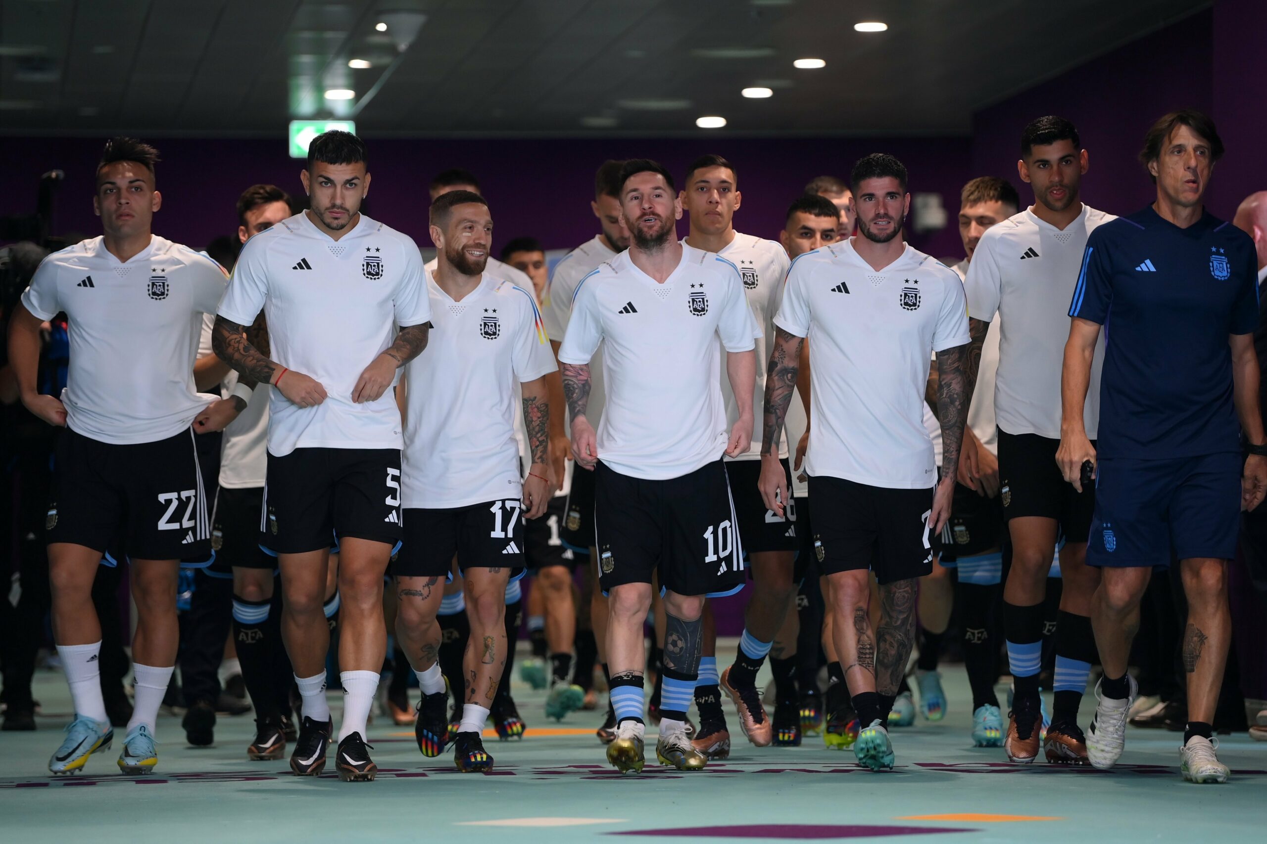 Emiliano Martínez; Nahuel Molina, Nicolás Otamendi, Lisandro Martínez o Cuti Romero, Marcos Acuña o Nicolás Tagliafico; Leandro Paredes o Enzo Fernández, Rodrigo De Paul, Alexis Mac Allister o Papu Gómez; Lionel Messi, Lautaro Martínez y Ángel Di María.