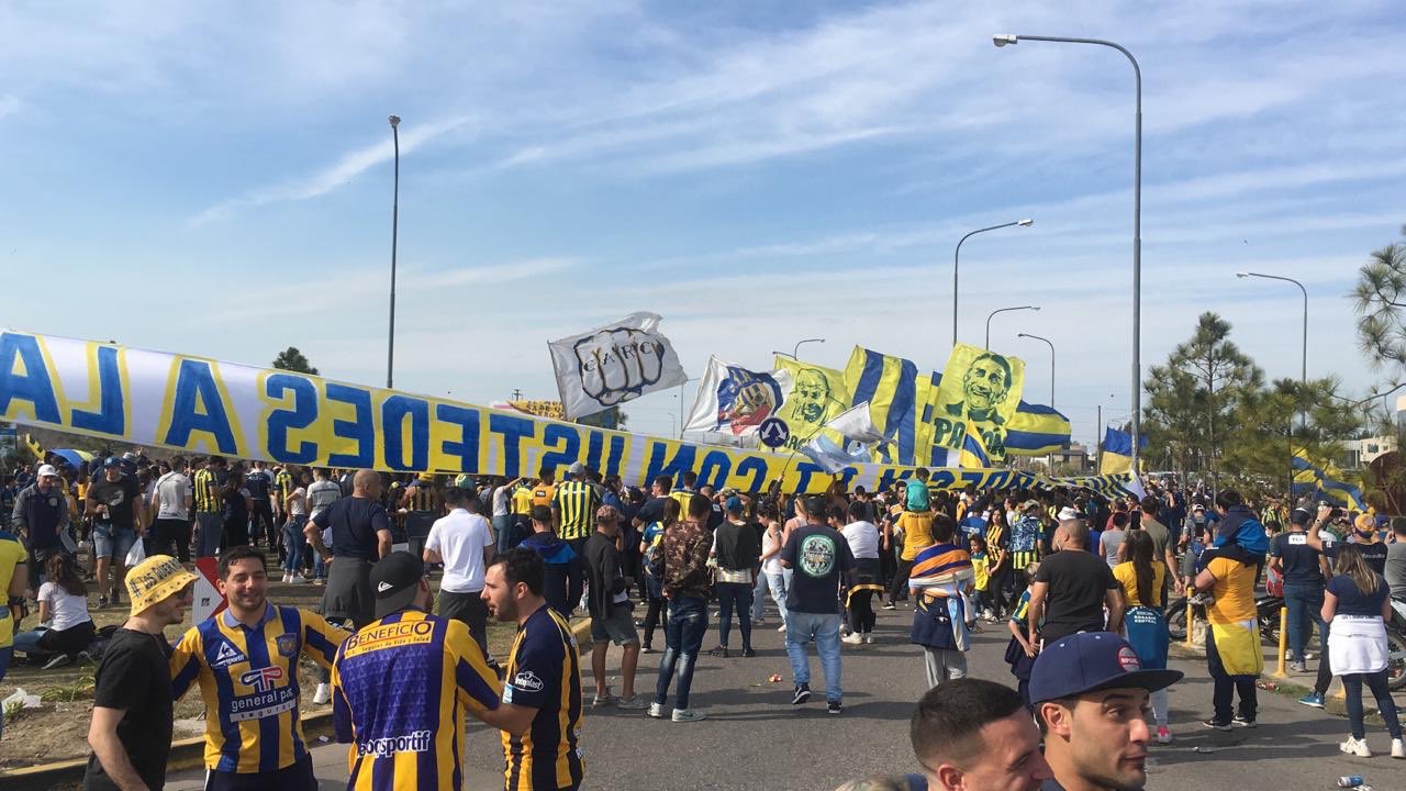 De cara a un partido definitorio y en la previa al vuelo, decenas de hinchas se aglomeraron en las afueras del Aeropuerto Islas Malvinas para alentar a los deportistas. Con banderas, tambores y cánticos de aliento, los fanáticos apoyaron al conjunto de Kily González.