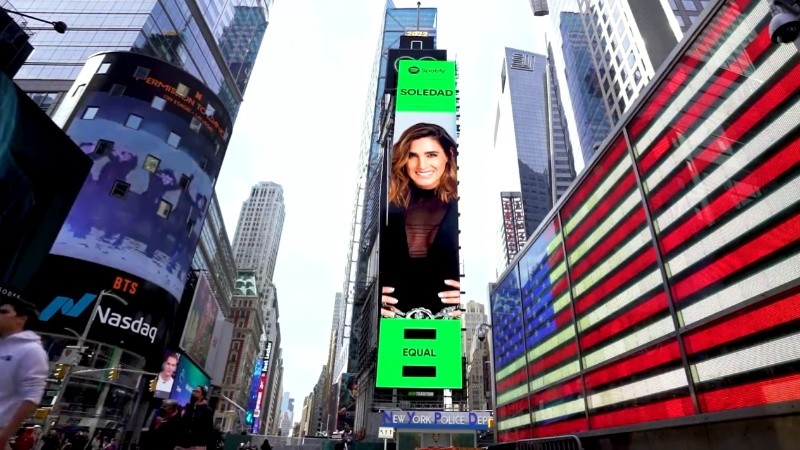 Soledad Pastorutti apareció en el mítico Times Square en pleno Manhattan. La cantante apareció en una pantalla gigante de la famosa zona al convertirse en la artista del mes por Spotify. De Arequito a Nueva York sin escalas.