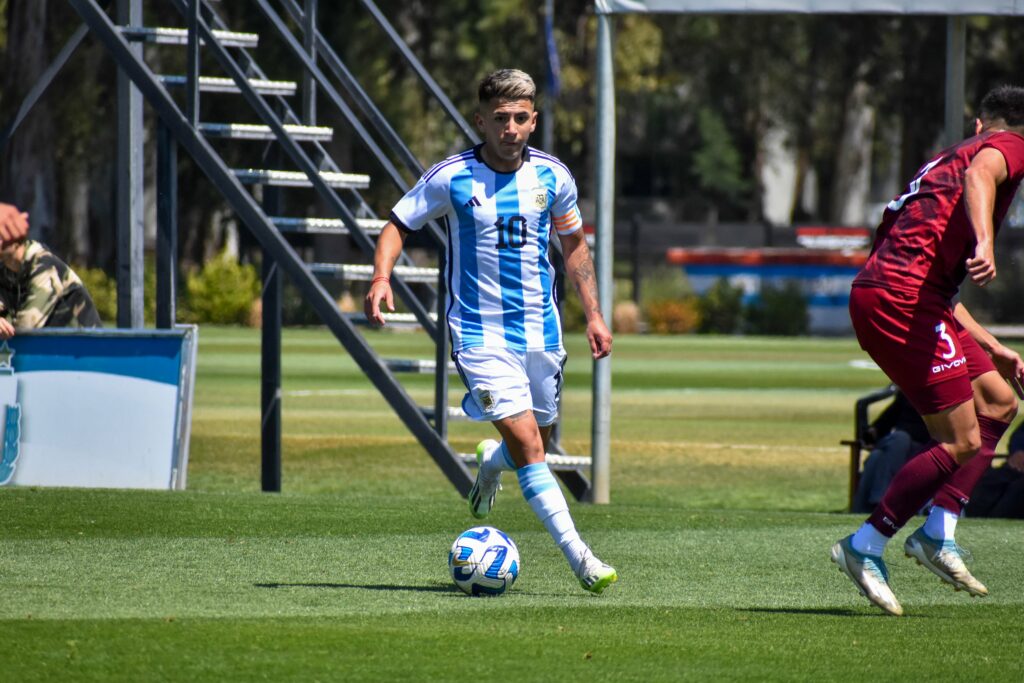 Esta mañana, la Selección Argentina Sub 23 igualó 1-1 ante Venezuela en el complejo Lionel Andrés Messi. El encuentro, que fue observado por parte del plantel y cuerpo técnico de la Mayor, tuvo al conjunto nacional desde el inicio como dueño del balón y principal protagonista. Parado en campo rival, contó con las situaciones más claras pero durante la primera mitad no pudo quebrar el cero.