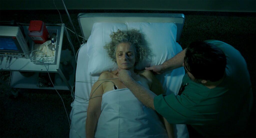 El muy buen trabajo de fotografía de Gustavo Biazzi es inseparable de la creación del particular clima del film, marcado por los tonos y contrastes del hospital como concepto visual. “Soy fotógrafo y todo el tiempo indago sobre la imagen. La luz tenue, la oscuridad y los colores del mundo hospitalario eran cruciales para transmitir ese clima, mientras que la cámara debía cumplir una función preponderante dentro de la puesta en escena. El compromiso de Gustavo con la película nos llevó a tener charlas sobre el guion y la dirección. El mundo de tonos verdosos y azules que armaron Juan Giribaldi y Coqui Curi Antún en el arte y Roberta Pesci en el vestuario tienen algo de esa realidad ensoñada que sentí que debía tener la película: el mundo que recorre Marcos es una especie de desprendimiento de su propio cerebro, sus miedos, sus pensamientos. Mi idea fue construir La dosis codo a codo con el equipo y me pone muy feliz saber que así se fue dando. En todo esto apareció el trabajo de algunos directores coreanos como Park Chan-wook y Kim Ji-woon. También tuve presente los climas de Tsai Ming-Liang y la tensión de Yorgos Lanthimos. Y como no nombrar, aunque más no sea como un deseo, las influencias de Hitchcock, Polanski y el cine cerebral de Kubrick”. Mientras tanto, en la ficción, la Unidad de Cuidados Intensivos está que arde y el sospechoso exceso de muertes durante las últimas semanas convoca a un par de investigadores internos, uno de ellos interpretado por el experimentado Arturo Bonín. Al mismo tiempo, los encontronazos entre los dos enfermeros dejan de ser verbales para dejarle cada vez más espacio a la sangre, la simbólica y la literal, un vínculo estrecho que pasa sin solución de continuidad de la atracción más irrefrenable al rechazo visceral.