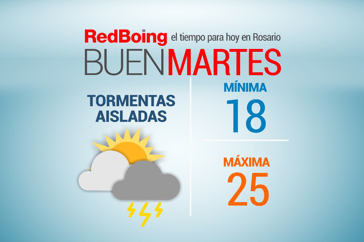 El Servicio Meteorológico Nacional informó que este martes en la ciudad de Rosario será un día con tormentas aisladas. Habrá una mínima de 18º y máxima de 25º. Por la mañana se espera una media de 20º y hacia el mediodía unos 23º.