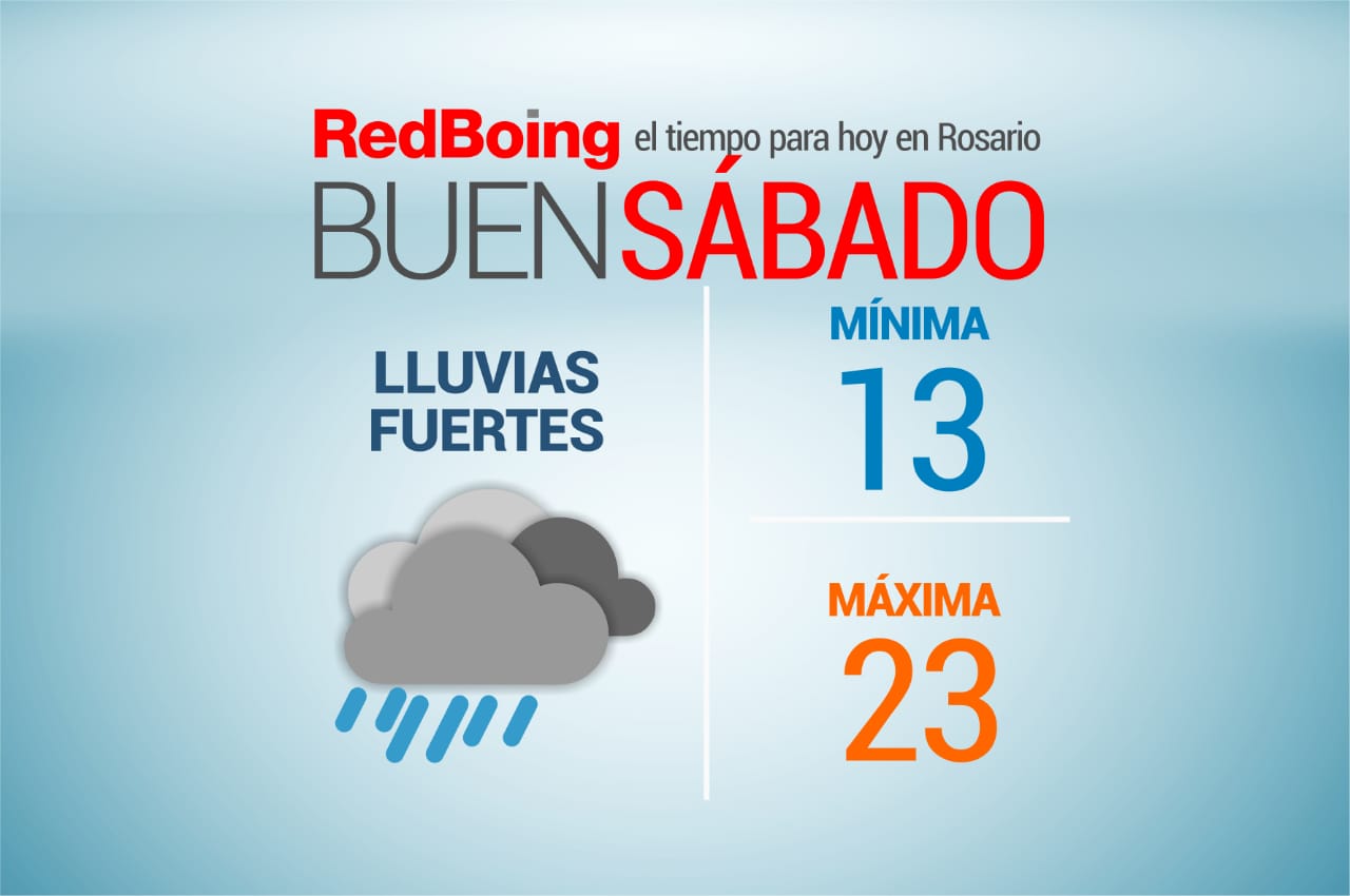 El Servicio Meteorológico Nacional informó que este sábado en la ciudad de Rosario será un día con tormentas fuertes. Habrá una mínima de 13º y máxima de 23º. Por la mañana se espera una media de 17º y hacia el mediodía unos 20º.