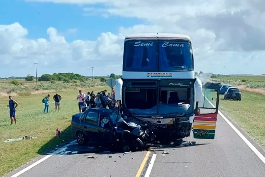 Un accidente vial provocó la muerte de dos personas. El siniestro se produjo en la Ruta provincial 11, en el kilómetro 155, Pipinas, entre un auto y un colectivo de larga distancia. El choque frontal provocó además 5 heridos.