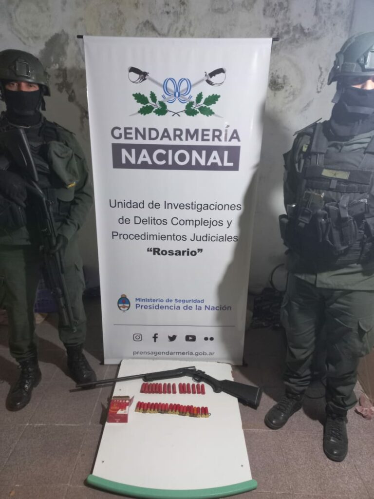 Con la intervención del Juzgado Federal N° 3 de Rosario, a cargo del Dr. Carlos Vera Barros, los efectivos procedieron a allanar los inmuebles. Durante los registros, se incautaron varios elementos, entre ellos más de cuatro millones de pesos en efectivo y dólares, dispositivos electrónicos, dos teléfonos celulares, tarjetas de memoria y chips, así como una escopeta con municiones calibre 16 y herramientas de fraccionamiento.