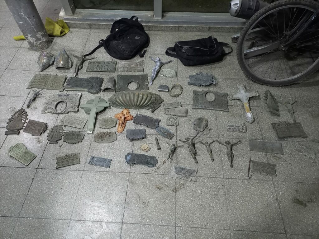 Tres hombres fueron detenidos en la madrugada del viernes en distintos hechos en la ciudad. Las autoridades informaron que se les encontraron placas de bronce y picaportes, presuntamente robados para venderse en chatarrerías.