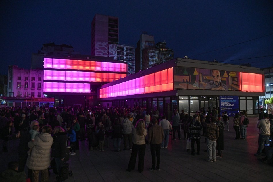 Desde las 15 hasta las 19 horas, rosarinos, rosarinas y visitantes se acercaron para ser parte de este hito. La nueva fachada, completamente pintada y adornada con una iluminación ornamental perimetral en sus tres pisos, cautivó a los y las presentes, quienes pudieron apreciar las diversas escenas lumínicas que ahora realzan la arquitectura del lugar. Las ventanas, recubiertas con lona mesh translúcida, completaron la imagen de un Fontanarrosa renovado.