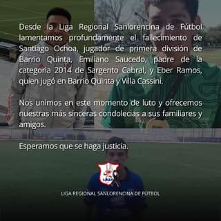 ¿De dónde se conocía Ramos con el presunto autor del triple crimen? Todavía no hay respuesta para el interrogante, que podrá salir seguramente de la pericia del teléfono de este hombre, que había logrado escapar de dos allanamientos que solicitó oportunamente la Policía Federal y era buscado por la justicia. Lo que sí se sabe es que el fútbol podría haber sido el vínculo suyo con las otras dos víctimas. Luego de conocida la noticia de las muertes, las redes sociales en el cordón industrial se inundaron de mensajes saludando especialmente a Ochoa y Saucedo, que al igual que Lobos no contaban con antecedentes policiales. La Liga Sanlorencina inclusive posteó en memoria de los tres hombres muertos y allí brindó algún dato sobre el recorrido que hicieron por clubes de la institución.
