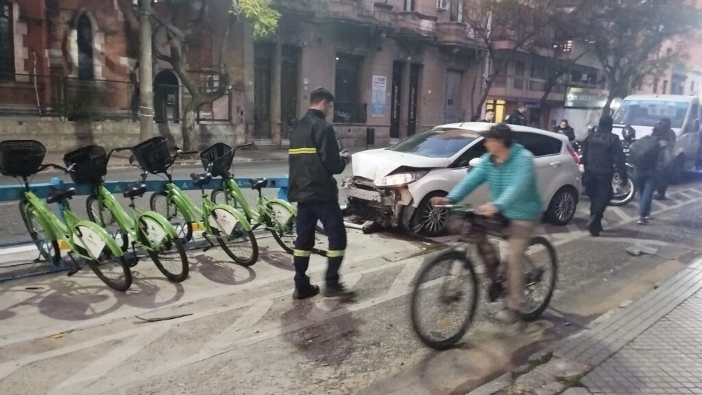 Durante las primeras horas de la jornada, una mujer chocó con su auto contra la estación de bicicletas públicas que están instaladas en la esquina de Salta y Bv. Oroño. El choque generó varios daños en la estructura, tanto del sistema de bicicletas como en el automóvil.
