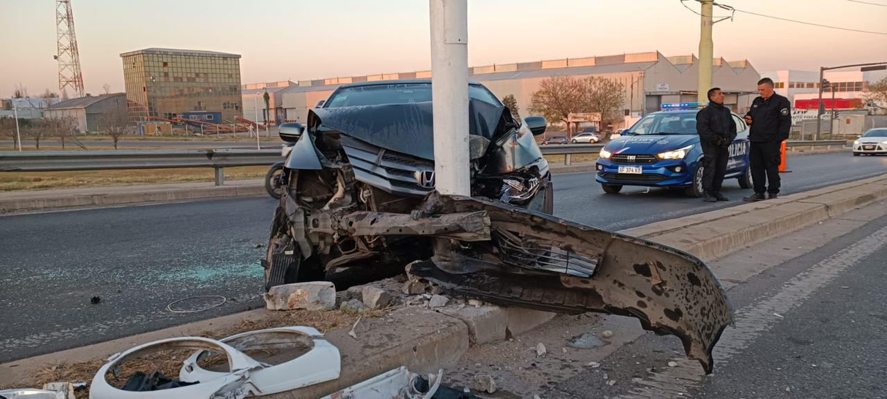 La Avenida Jorge Newbery suele ser utilizado como acceso a la ciudad por aquellos que residen en Funes o inclusive en barrio Fisherton. En las primeras horas de este miércoles, y justo sobre el puente que cruza a Circunvalación, un automóvil terminó incrustado en una columna de luminaria, teniendo pérdidas prácticamente totales.