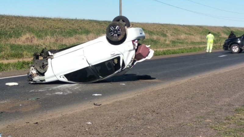 El tránsito, en la mano hacia Rosario, permenació cortado a la espera de una grúa para remover el automóvil volcado en la carretera. Los autos debían desviar en Funes hacia Ruta 9.