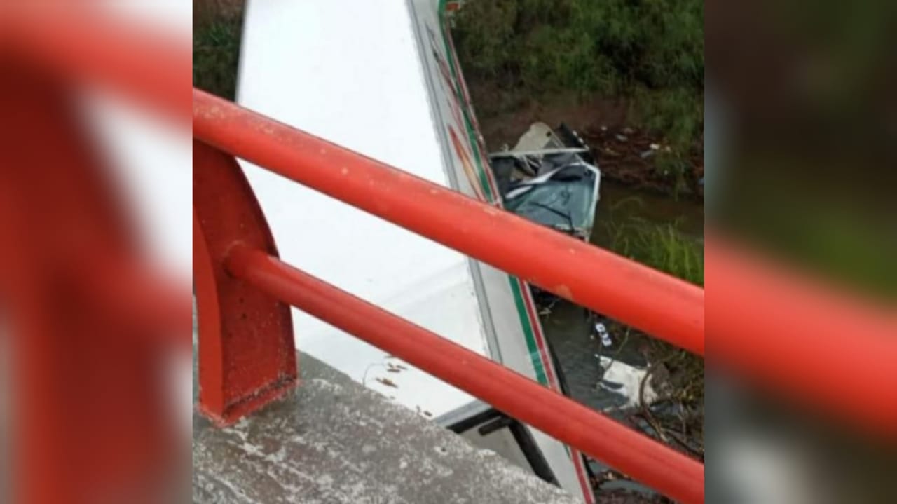 Las incesantes lluvias y el fuerte viento son dos factores que obligan a los conductores a tener más responsabilidad a la hora de manejar. Pasadas algunas horas del mediodía de este sábado, un camión frigorífico intentó pasar a otro vehículo, pero al volver a su carril, el conductor perdió el control del rodado. Según declaró el propio chofer, esto hizo que el camión termine cayendo al arroyo. “Cuando agarro la parte ahuellada de la calzada, me saca el camión de costado. De ahí caí directamente abajo del puente”, contó.