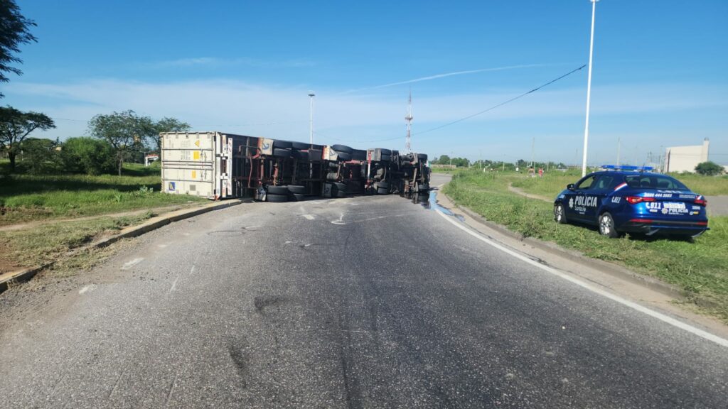 Un camión perdió el control y volcó en en acceso de la autopista hacia Av Circunvalación en la Autopista Rosario – Santa Fe luego de ser amedrentado por dos personas que le exhibieron un arma mientras circulaban en moto.