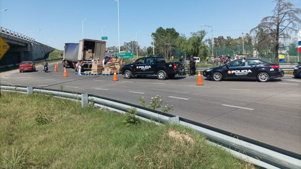 Un camión que transportaba elementos de limpieza volcó este martes al mediodía en el acceso a Av. Circunvalación desde la ruta 34. Los vecinos de la zona aprovecharon la mala maniobra para robar la mercadería y huir. El tránsito estuvo reducido por algunos minutos.