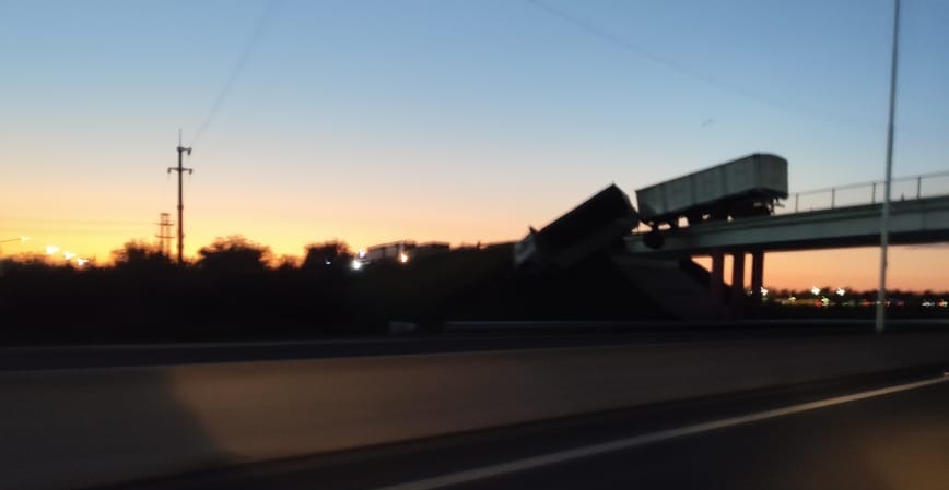 Un accidente que pudo haber terminado en tragedia ocurrió esta madrugada en el cruce de la Ruta Nacional AO12 y la Autopista Rosario-Santa Fe. Alrededor de las 2:30, el chofer de un camión perdió el control del vehículo por causas que todavía se investigan y terminó con la cabina suspendida en el aire, colgando desde el puente. A pesar de la espectacularidad del siniestro, las autoridades confirmaron que, por el momento, no se registraron heridos.
