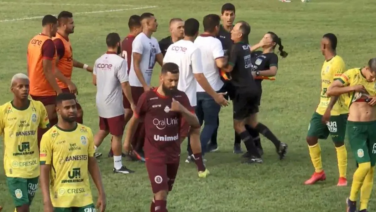 Nova Venécia y Desportiva Ferroviária se midieron por el campeonato regional, y a pesar de que empataron, el resultado no fue lo más importante del duelo. Rafael Soriano, entrenador del visitante, ingresó a protestar cuando terminó la primera parte.