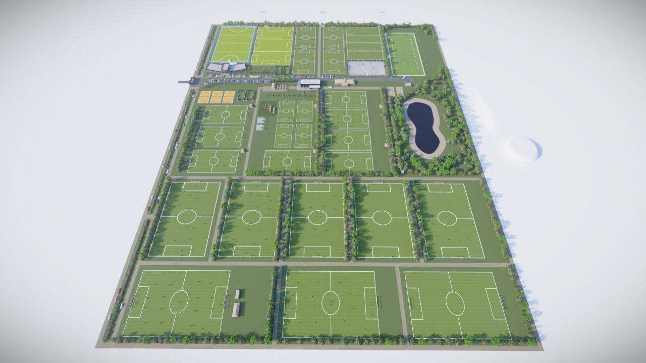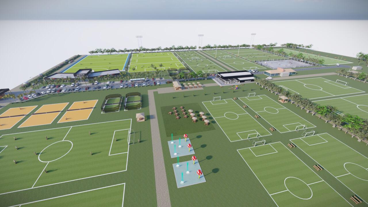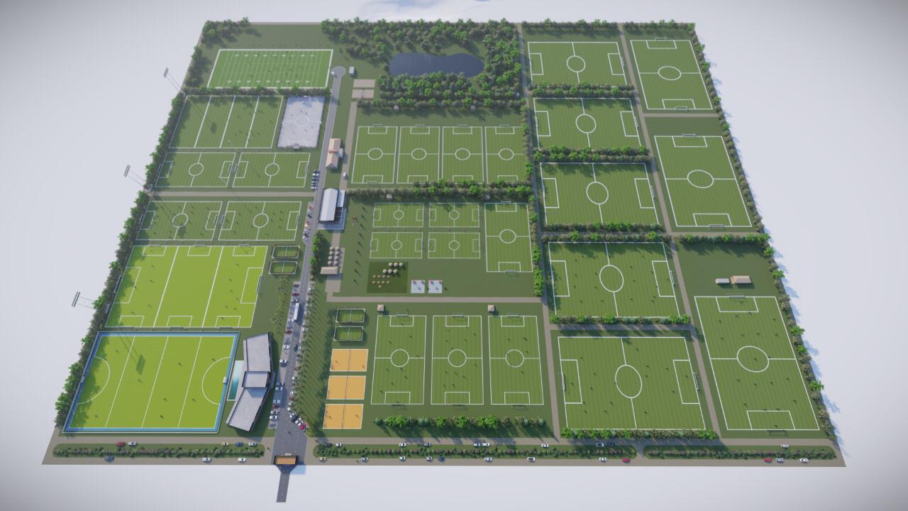 El masterplan contempla canchas de Fútbol 5, 8 y 11 de césped natural, canchas de Fútbol 11 y hockey ambas profesionales con césped sintético e iluminación Led de alta calidad, cancha de rugby, de tenis, de paddle, fútbol fusión, voley y fútbol playa y hasta una cancha de football americano, sí football americano en Funes. Además contará con un gimnasio de primer nivel, un sector gastronómico y varios puestos de expendio, una laguna, vestuarios y duchas, entre otros servicios distribuidos por toda la superficie.
