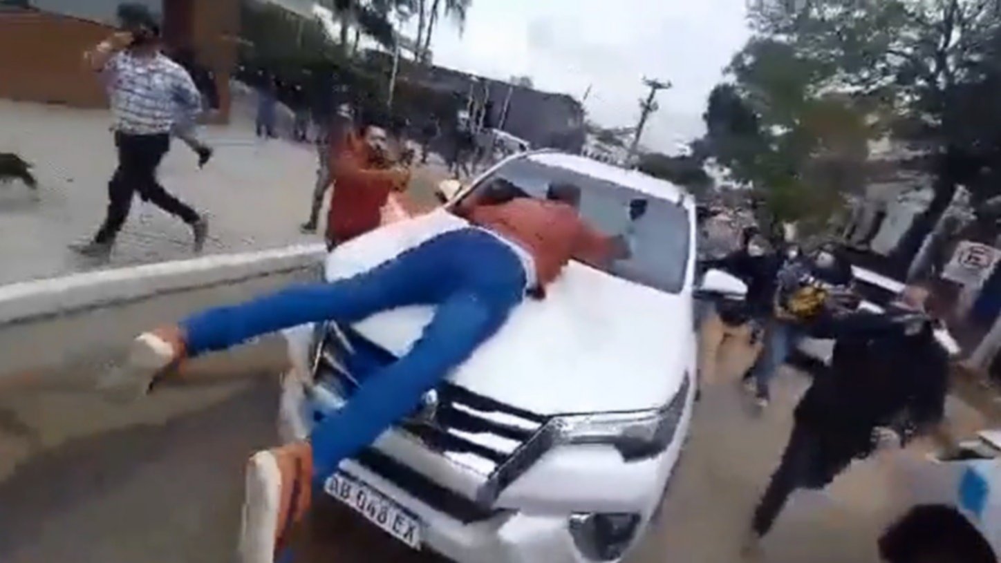 El ministro de la Comunidad, a cargo de la cartera de Desarrollo Humano de Formosa, Aníbal Gómez, protagonizó un hecho escandaloso en las últimas horas. Según quedó registrado en las cámaras de los manifestantes, arrastró sobre el capot de su camioneta a un comerciante que reclamaba contra las restricciones que impone el gobierno de Gildo Insfrán por la pandemia del coronavirus. Todo sucedió en las inmediaciones de la Casa de Gobierno provincial.