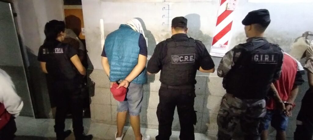 El personal del Cuerpo Guardia de Infantería se hizo presente en la escena del crimen y, tras realizar un operativo cerrojo en la zona, localizó un domicilio donde se habrían refugiado los presuntos responsables. Con la autorización de la fiscalía de Homicidios Dolosos, se procedió a rodear la vivienda e ingresar, logrando la aprehensión de cinco personas: Rodrigo Rubén B. (22), Francisco Nicolás Q. (19), Eugenio Nahuel F. (23), Nahuel Mauricio A. (25) y Melina Evelin A. (19).